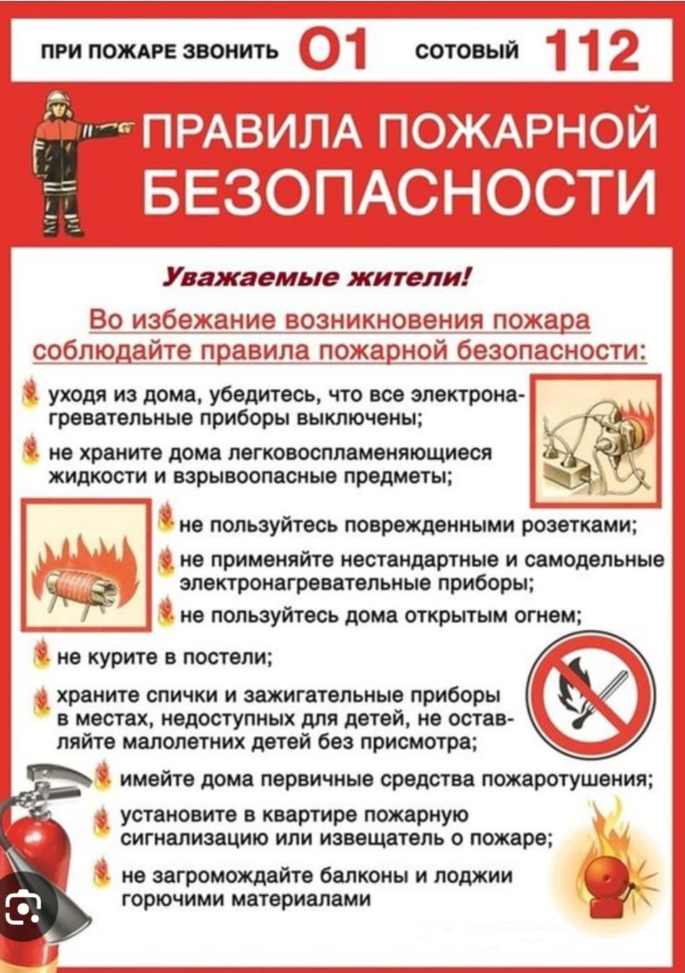 ПОМНИТЕ! При возникновении пожара надо немедленно вызвать пожарную охрану по телефону «112», сообщить адрес места пожара, что горит, свою фамилию и постараться потушить огонь с помощью подручных средств (воды, песка, плотной шерстяной ткани). Берегите себя и своих детей!