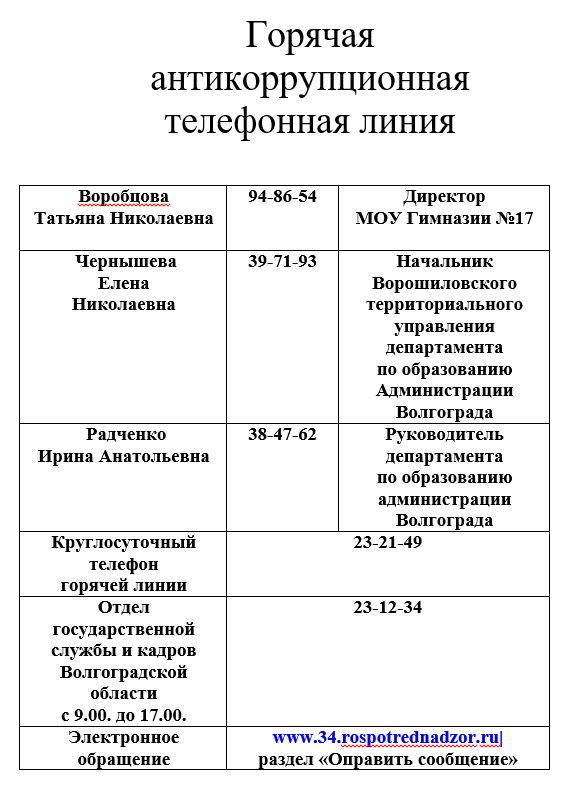 Если у вас возникли проблемы по вопросам коррупции в МОУ Гимназии №17, вы можете обратиться по следующим телефонам: